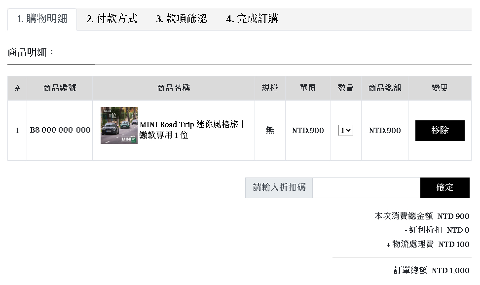 2. 商品數量選擇 : 1(示意圖以1位繳款為例,實際需以報名人數為主)