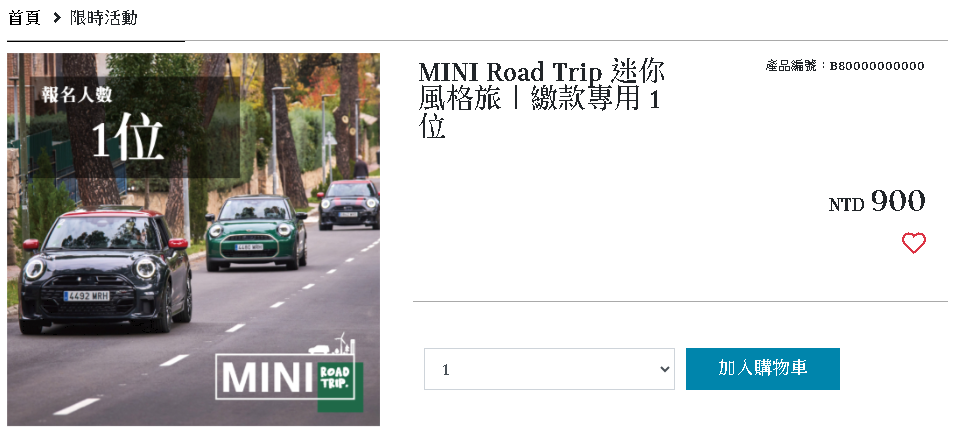 MINI Road Trip 迷你風格旅|繳款專用 1 位